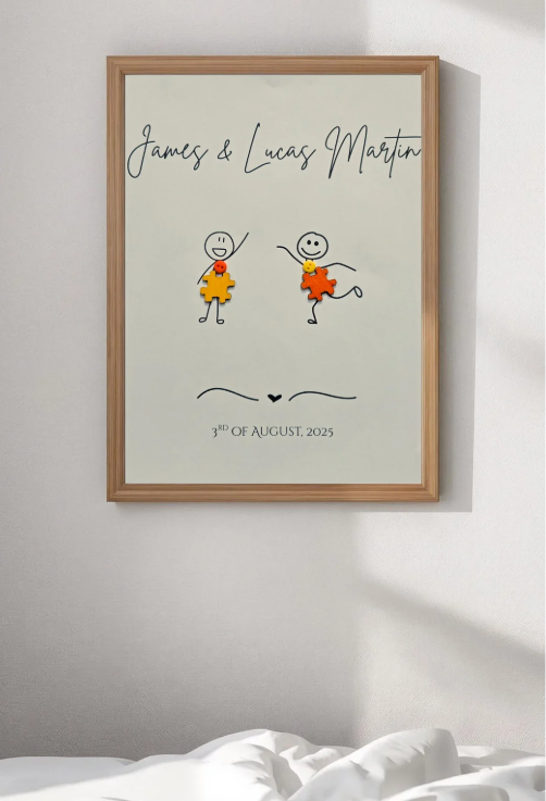 Every piece is customised with the child(ren)'s name(s) and can include any personal info such as date or place of birth, siblings' names, etc. These are carefully assembled and finished by hand to make each gift perfect for their recipient.