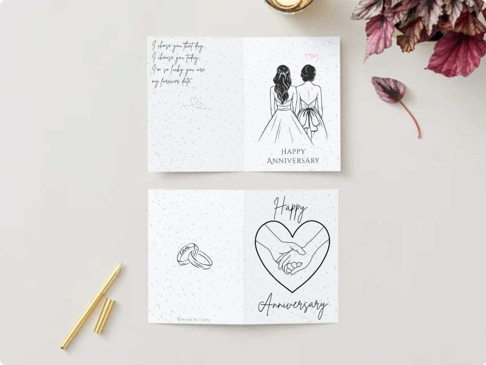 Our bespoke anniversary cards are designed to help you mark your special milestone with meaning, style, and a personal touch. Choose from a range of beautifully crafted designs - from elegant and romantic to fun and modern, and customise everything from names and dates to heartfelt messages and photos.